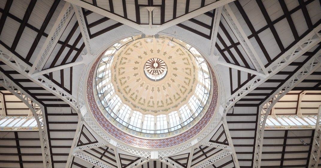 El Mercado Central se viste de Navidad y acoge bajo su cúpula la maqueta de la Falla Montolivet que reproduce el mercado, con un Belén giratorio en su interior